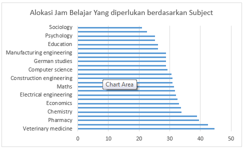 Jika digeneralisasi, maka pada umum nya para mahasiswa di Jerman rata rata menghabiskan 32,5 Jam per minggu. Namun siapakah yang paling banyak dan paling sedikit belajar dalam seminggu jika dicermati berdasarkan bidang studi mereka? Ternyata terdapat perbedaan yang sangat besar dalam hal waktu belajar diantara setiap subject peminatan.